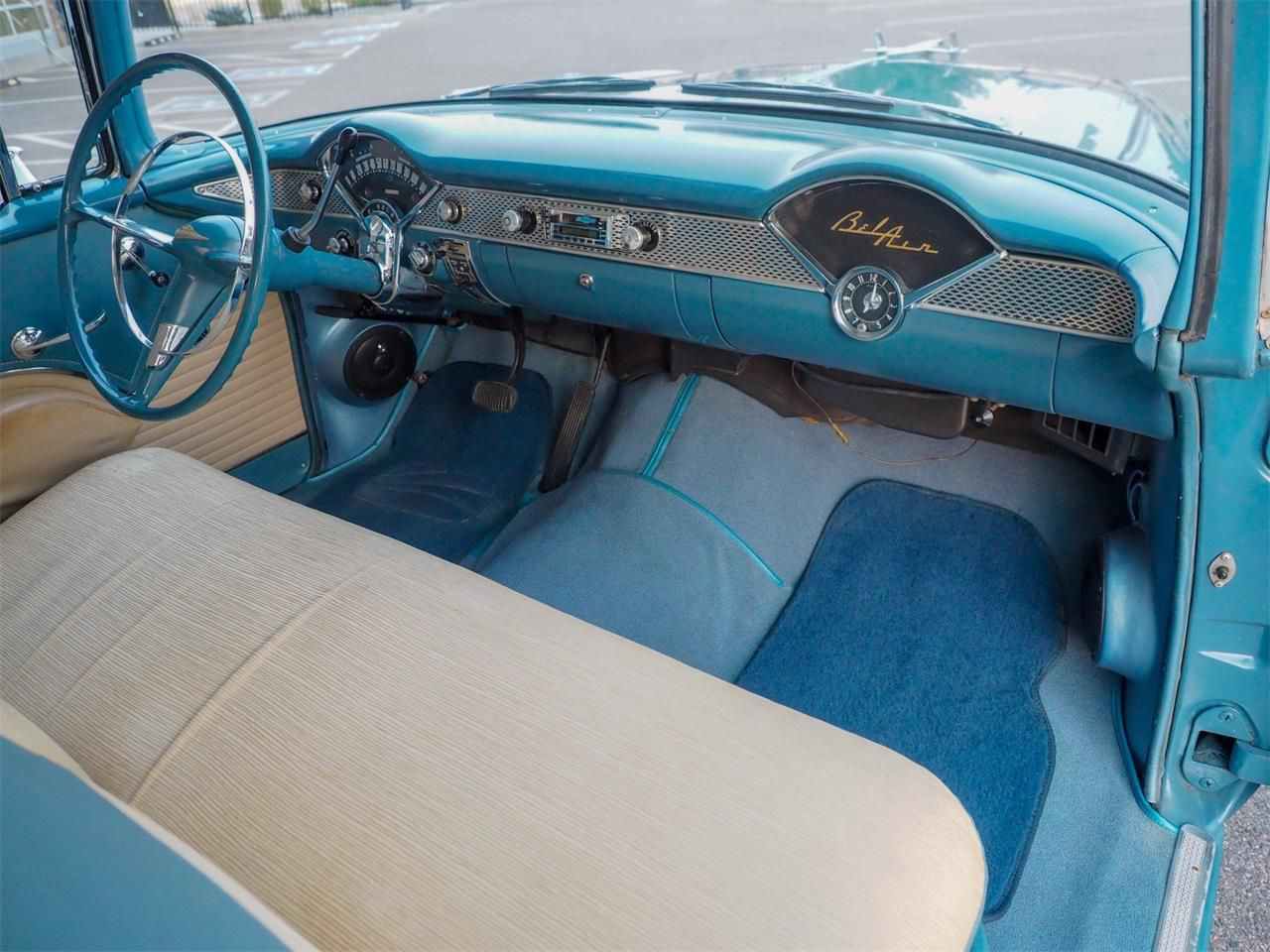 Stepping inside the Bel Air, you'll find a thoughtfully designed interior adorned in a delightful blue shade. The blue interior beautifully complements the exterior paint, creating a harmonious and visually appealing ambiance. The attention to detail can be seen throughout, from the plush seating to the well-crafted dashboard. Every element has been meticulously crafted to provide both comfort and a sense of timeless style.