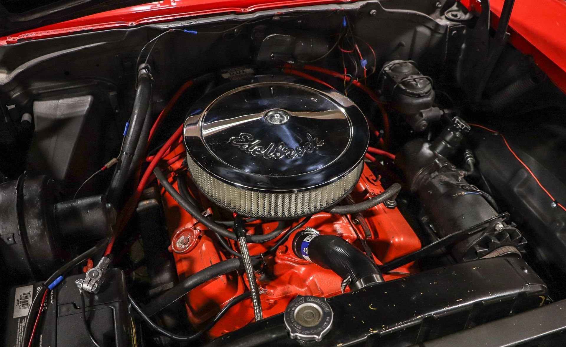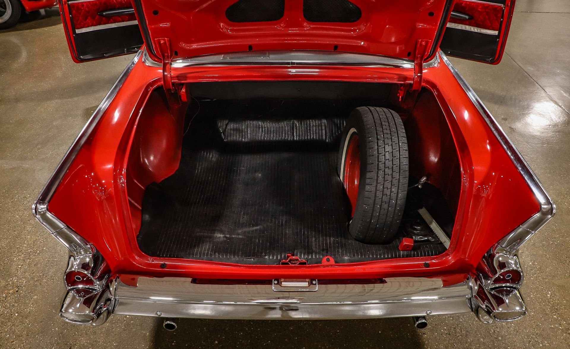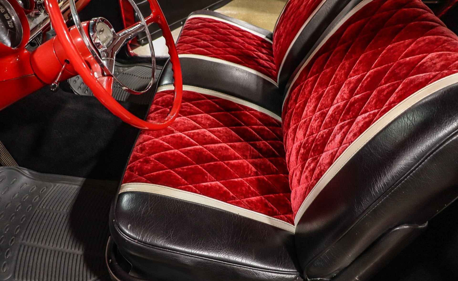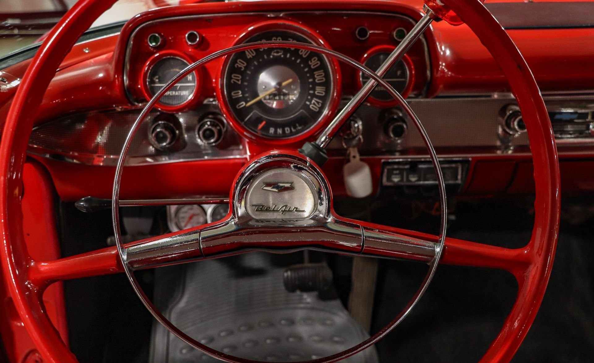 Underneath its gleaming red exterior, this Bel Air is equipped with a robust 327 cubic inch V8 engine, providing an exhilarating driving experience. The V8 powertrain delivers impressive acceleration and ensures that every drive is filled with excitement and nostalgia.