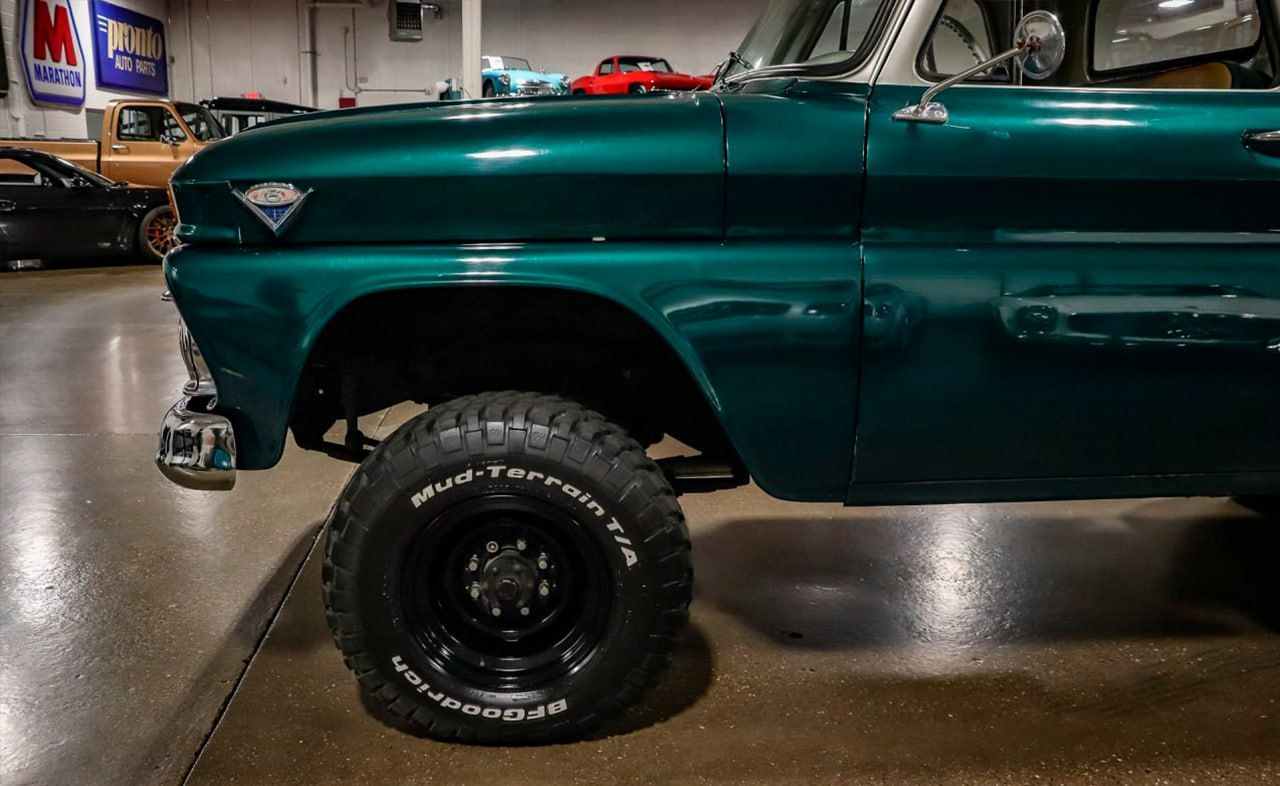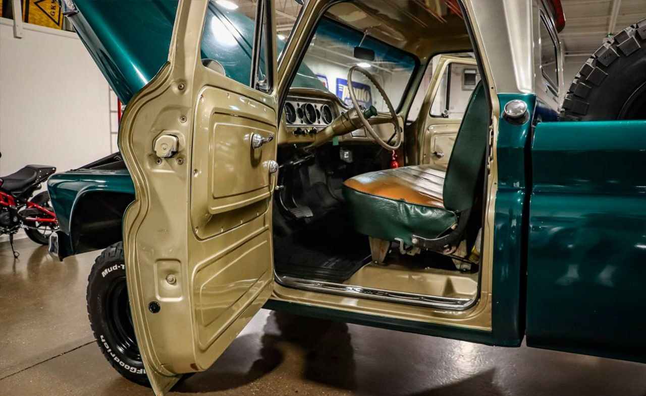 The exterior of this classic pickup is adorned in a captivating shade of green, displaying a timeless elegance that harks back to the era when it first rolled off the assembly line. The lustrous paintwork not only adds to its charm but also serves as a vibrant reminder of the vehicle's enduring beauty.